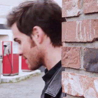 Paglalarawan ng Content: a man is leaning against a brick wall and looking away .
