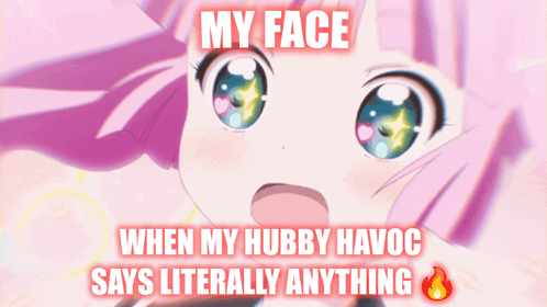Paglalarawan ng Content: a picture of a girl with the words " my face when my hubby havoc says literally anything "