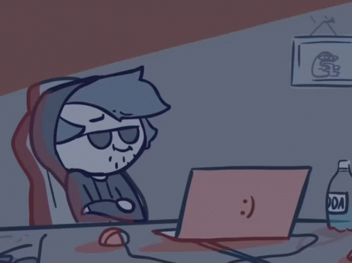 Paglalarawan ng Content: a cartoon drawing of a person sitting in front of a laptop with a smiley face on it
