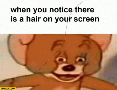 Paglalarawan ng Content: jerry from tom and jerry is smiling and says when you notice there is a hair on your screen starecat.com