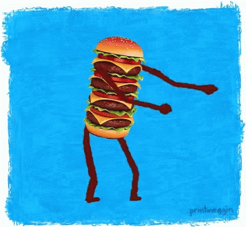 Paglalarawan ng Content: a cartoon drawing of a hamburger with arms and legs by printmeakin