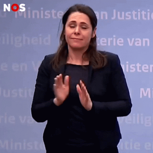 Paglalarawan ng Content: a woman stands in front of a sign that says " ministerie "