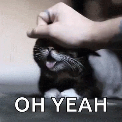 Paglalarawan ng Content: a person is petting a black and white cat with the words `` oh yeah '' written above it .