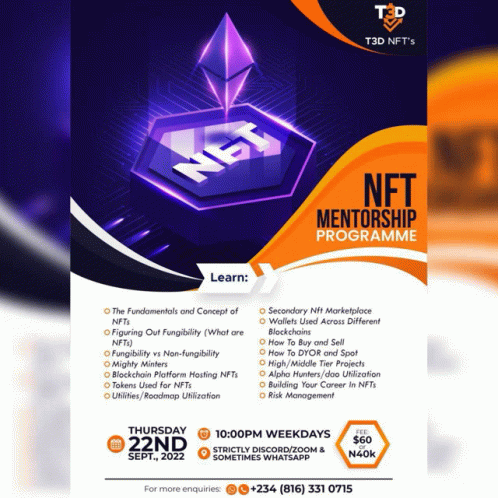 Paglalarawan ng Content: a flyer for a nft mentorship programme on thursday september 22nd 2022
