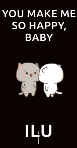 Paglalarawan ng Content: a cartoon of two cats kissing with the words " you make me so happy , baby "