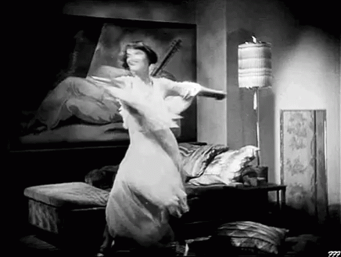 Paglalarawan ng Content: a woman is dancing in a room in front of a painting .