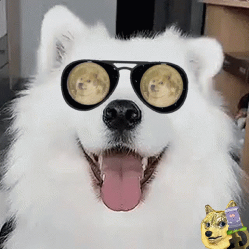 Paglalarawan ng Content: a white dog wearing sunglasses with a picture of a dog in the corner