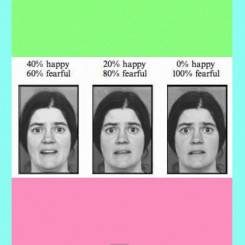 Paglalarawan ng Content: three images of a woman 's face with different percentages of happy and fearful .