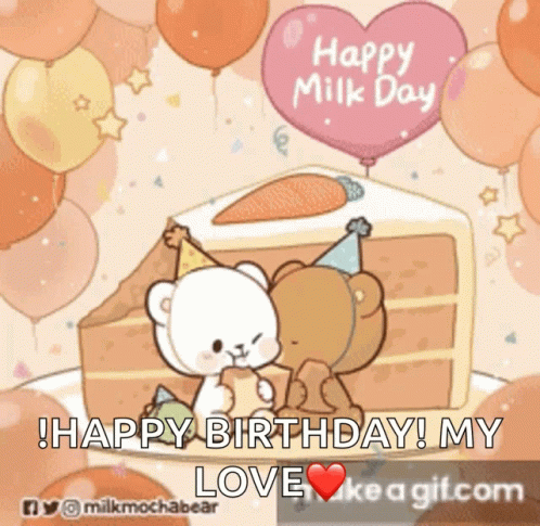 Paglalarawan ng Content: a cartoon of two teddy bears holding a piece of cake with a heart shaped balloon that says happy milk day