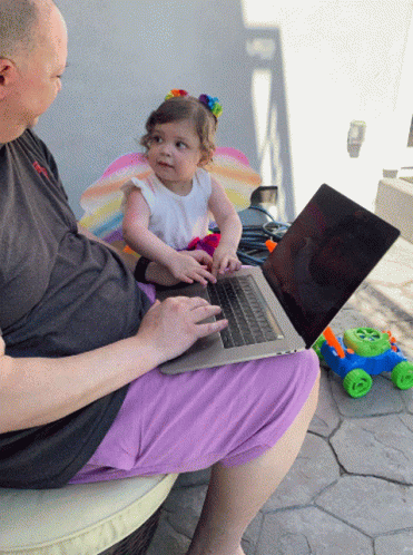 Paglalarawan ng Content: a little girl sits on a man 's lap using a laptop computer