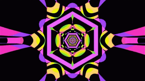 Paglalarawan ng Content: a kaleidoscope of pink and blue circles and lines on a black background