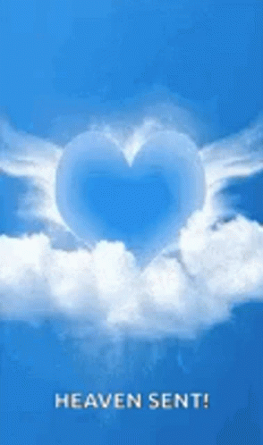 Paglalarawan ng Content: a heart shaped cloud in the sky with the words `` heaven sent '' below it .
