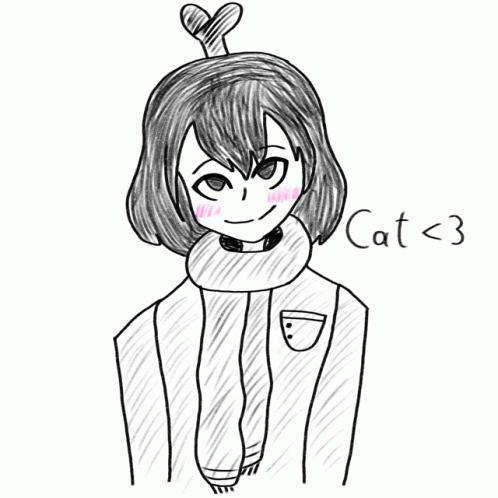 Paglalarawan ng Content: a drawing of a girl with cat < 3 written below her