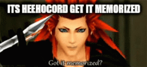 Paglalarawan ng Content: a video game character with red hair holding a spear and the words " its heehocord get it memorized "