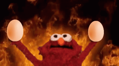 Paglalarawan ng Content: elmo from sesame street is holding two eggs in front of flames .