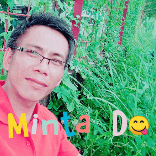 Paglalarawan ng Content: a man wearing glasses and a red shirt is standing in front of a fence with mintado written in the grass