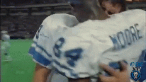 Paglalarawan ng Content: a man wearing a number 84 jersey is hugging another man