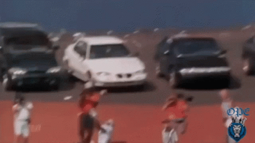 - Paglalarawan ng Content: a blurry picture of a parking lot with a white car in the foreground and a few people in the background