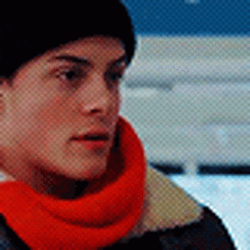 Paglalarawan ng Content: a close up of a man wearing a red scarf and a black hat .