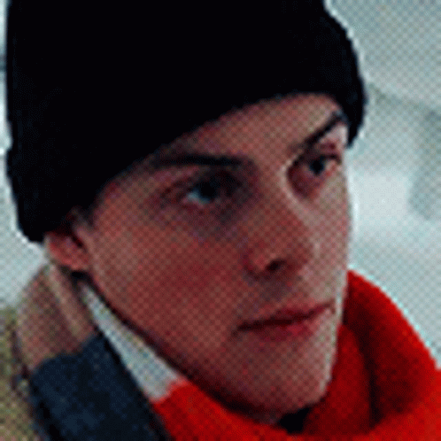 Paglalarawan ng Content: a man wearing a black hat and a red scarf is looking at the camera .