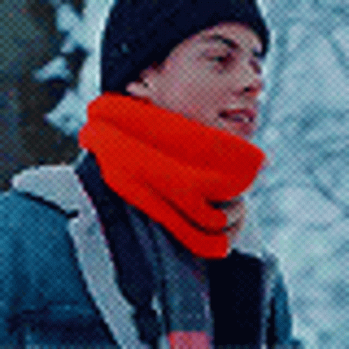 Paglalarawan ng Content: a man wearing a red scarf around his neck and a black hat