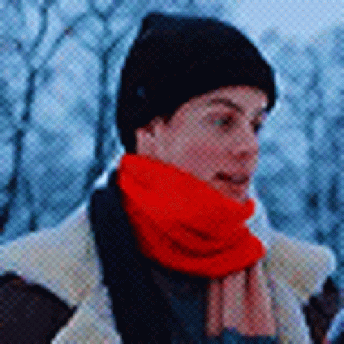 Paglalarawan ng Content: a man wearing a black hat and a red scarf in the snow .
