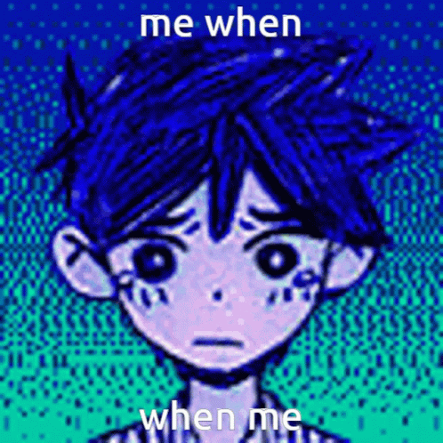 Paglalarawan ng Content: a pixel art of a boy with blue hair and the words me when when me
