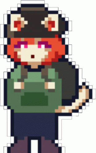Paglalarawan ng Content: a pixel art drawing of a girl with red hair and a backpack