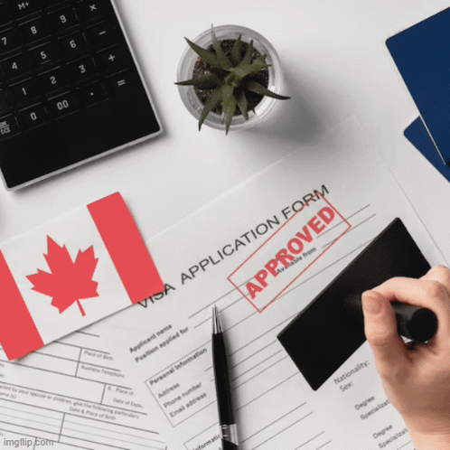 Paglalarawan ng Content: a visa application form is stamped with the word approved on it