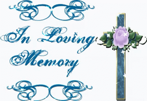Paglalarawan ng Content: a cross with a purple rose and the words in loving memory below it