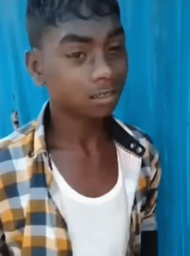 Paglalarawan ng Content: a young man in a plaid shirt and white tank top is standing in front of a blue wall .