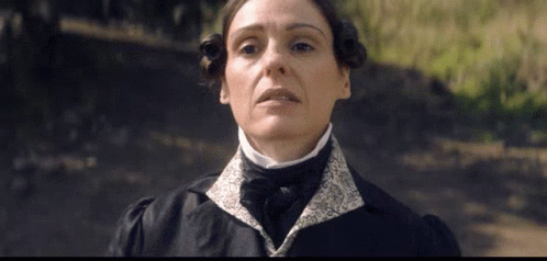 Paglalarawan ng Content: a woman in a black jacket and white collar is standing in front of a wall .