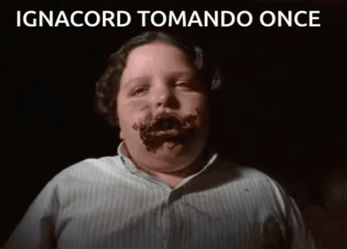 Paglalarawan ng Content: a man with chocolate on his face and the words " ignacord tomando once " below him