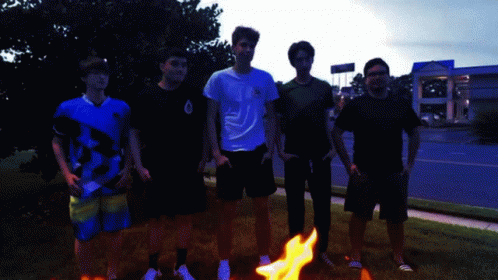 Paglalarawan ng Content: a group of young men standing in front of a flame