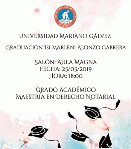 Paglalarawan ng Content: a poster for universidad mariano galvez with a picture of graduation caps and flowers