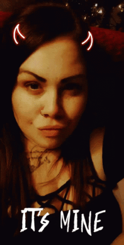 Paglalarawan ng Content: a woman with devil horns on her head and the words " it 's mine " below her