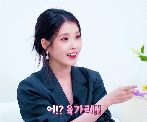 Paglalarawan ng Content: a woman wearing a black jacket and earrings is smiling and holding something in her hand with korean writing behind her
