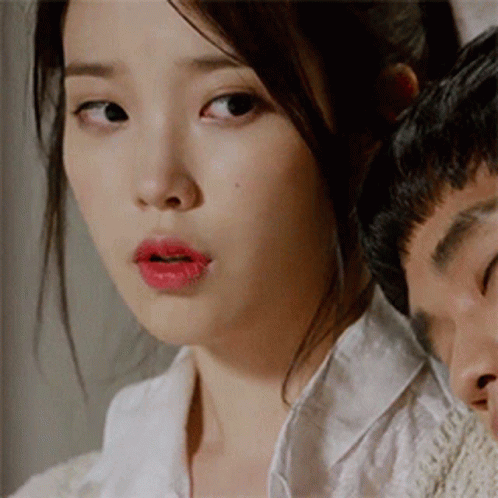 Paglalarawan ng Content: a close up of a woman 's face with red lips and a man behind her