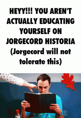 Paglalarawan ng Content: a poster that says heyy !! you aren t actually educating yourself on jorgecord historia