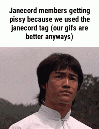 Paglalarawan ng Content: a gif of bruce lee with the caption janecord members getting pissy because we used the janecord tag