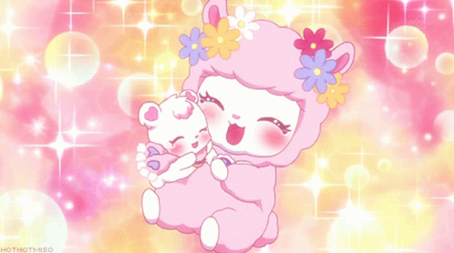 Paglalarawan ng Content: a pink cartoon character with flowers on her head