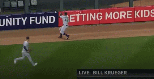 Paglalarawan ng Content: a baseball game is being played in front of an ad for y fund