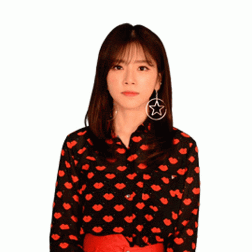 Paglalarawan ng Content: a woman in a red and black polka dot shirt is making an x sign with her hands crossed .
