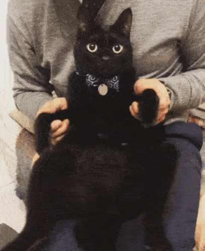 Paglalarawan ng Content: a man is holding a black cat in his lap