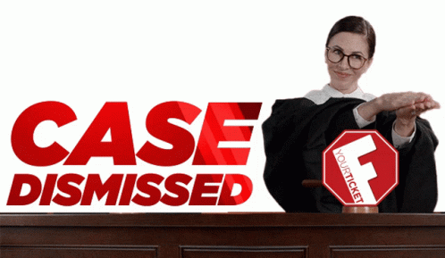 Paglalarawan ng Content: a woman in a judge 's robe is holding a stop sign that says case dismissed