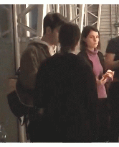 Paglalarawan ng Content: a woman in a purple sweater is standing next to a man in a black jacket
