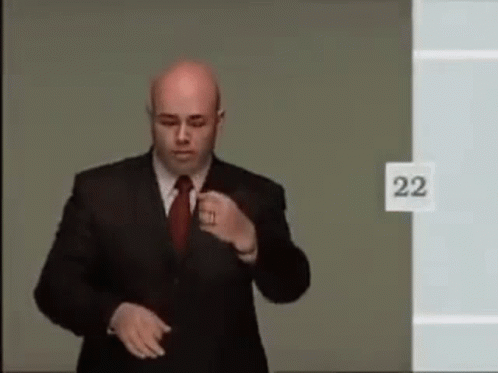 Paglalarawan ng Content: a bald man in a suit and tie is standing in front of a wall with the number 22 on it