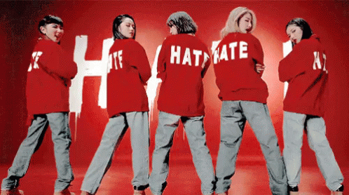 Paglalarawan ng Content: a group of women in red shirts that say hate