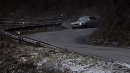 Paglalarawan ng Content: a car is driving down a curvy road with a fence in the foreground