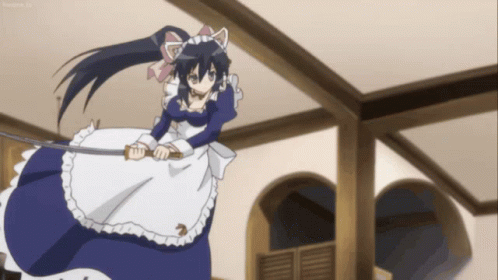 Paglalarawan ng Content: a girl in a maid outfit is holding a sword in her right hand